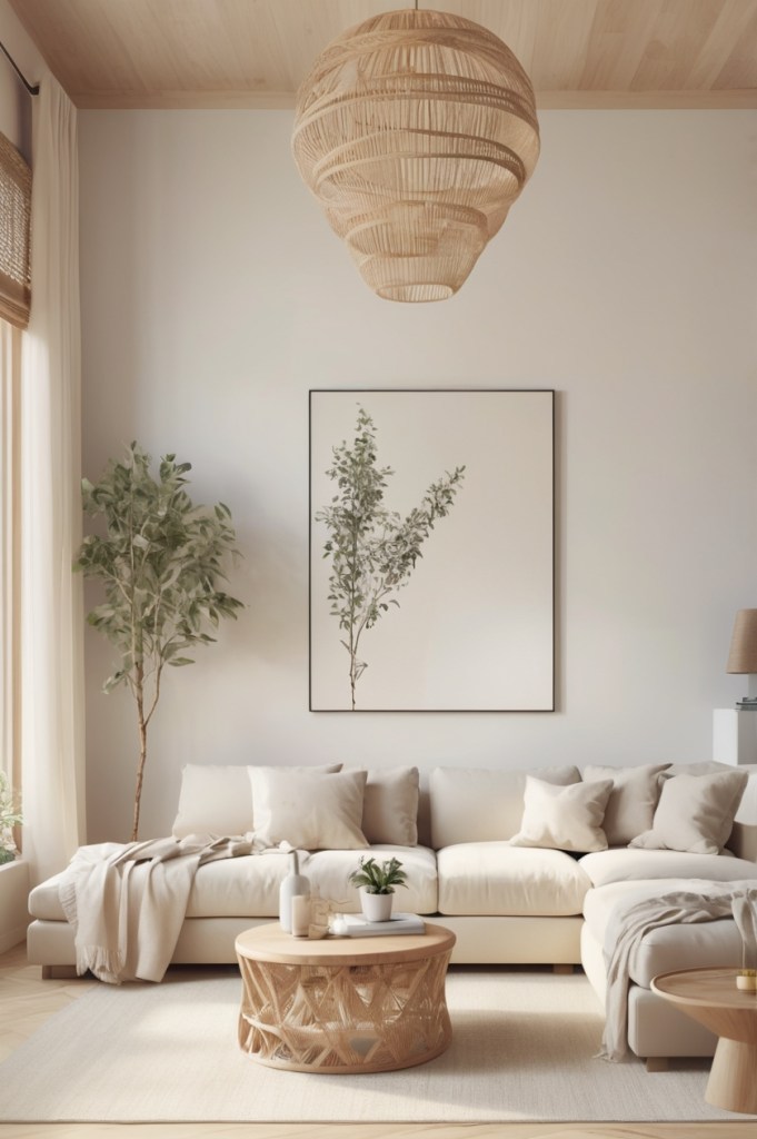 Use wood, stone, wool, and linen to bring the outdoors inside. Light-toned wood furniture (like birch or ash) is a Scandi staple and pairs beautifully with greenery or rattan.